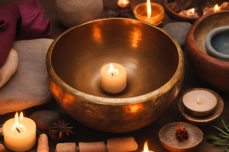 Tauche ein in die Welt des Klangs und lass dich von den heilsamen Tönen und Schwingungen der Klangschalen, des Windgongs und anderer Instrumente umhüllen.