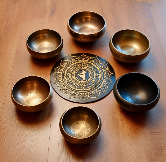 Tauche ein in die Welt des Klangs und lass dich von den heilsamen Klängen und Schwingungen der Klangschalen, des Windgongs und anderer Instrumente umhüllen.